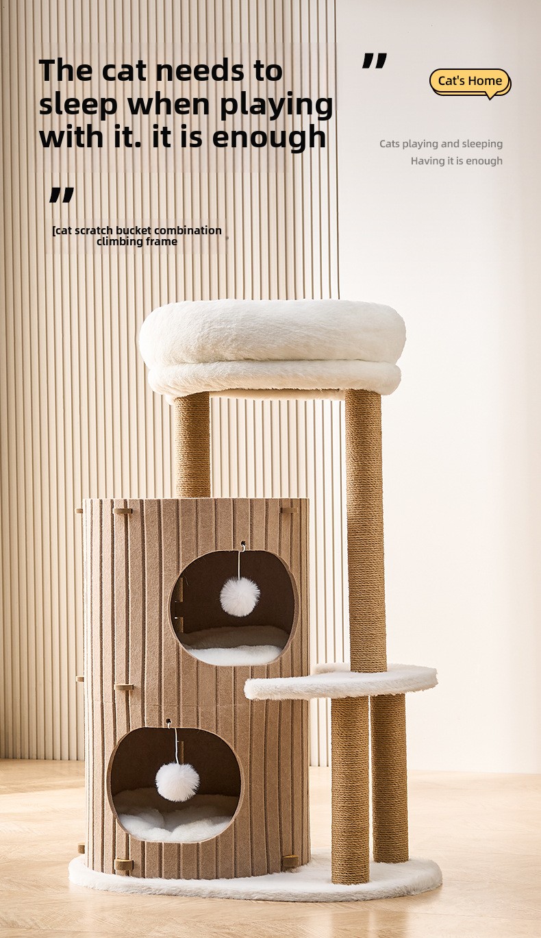 Cat climbing frame household does not occupy a tree hole cat nest integrated winter warm cat scratching nest cat double jumping platform felt bucket
