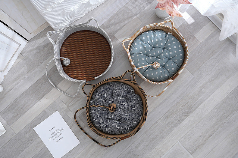 Straw winter warm cat nest, cattail grass weaving cat supplies universal in all seasons, super large pet nest spot
