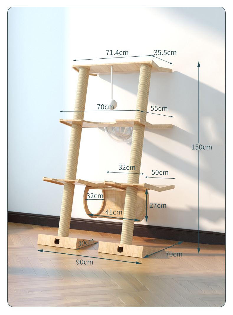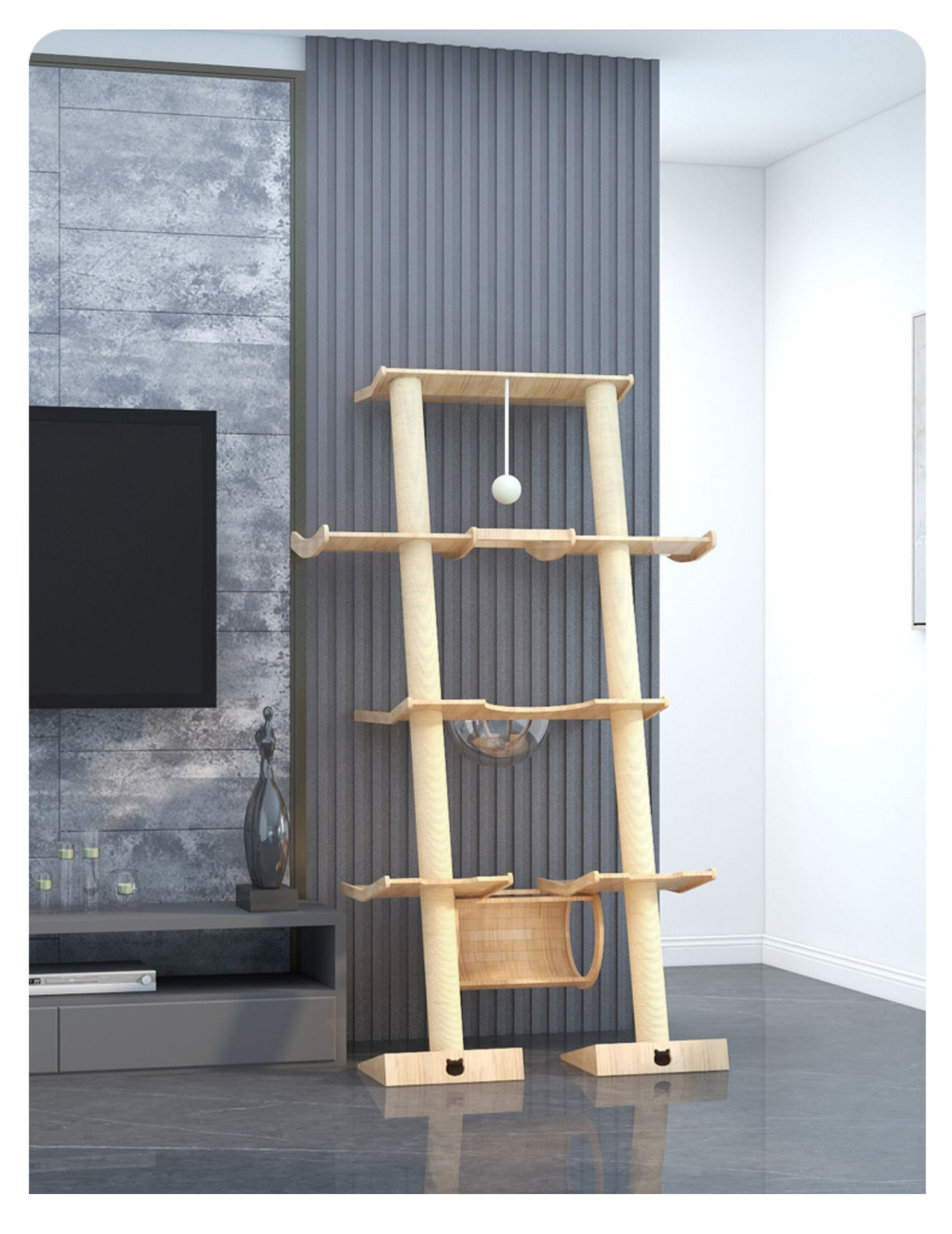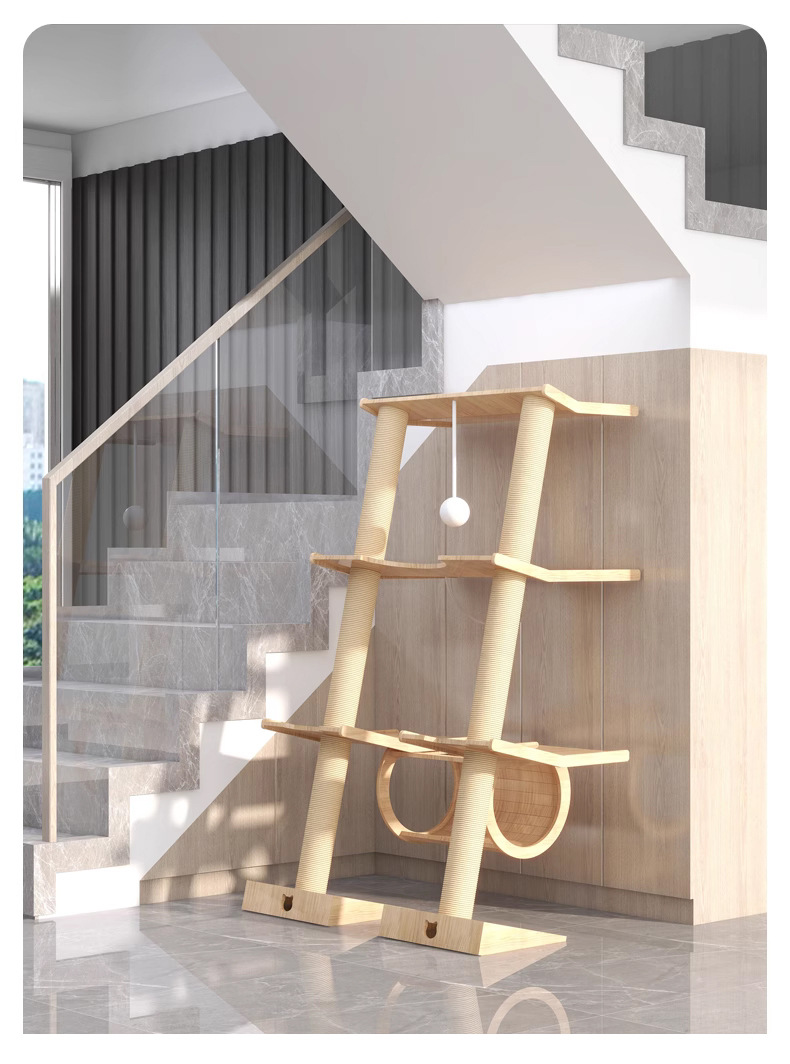 Wholesale custom cat climbing frame Small apartment solid wood against the wall cat scratching board integrated leaning tower leaning against the cat jumping platform climbing column wall type