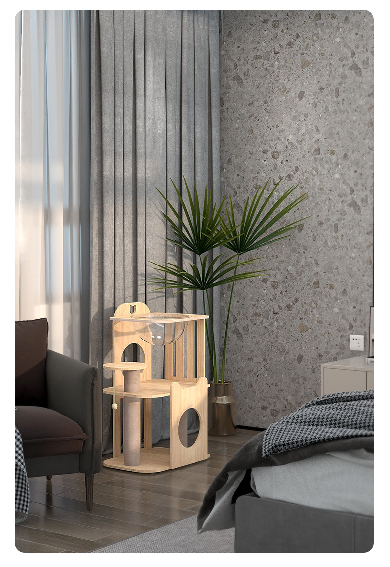 Cat climbing frame Cat scratching tree Space capsule Cat shelf Small cat climbing frame Solid wood cat frame Cat litter Cat tree integrated