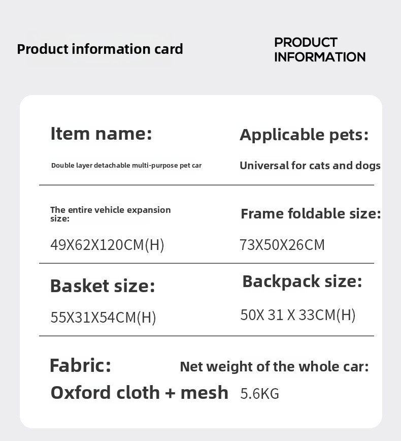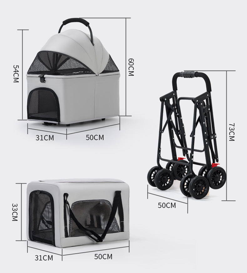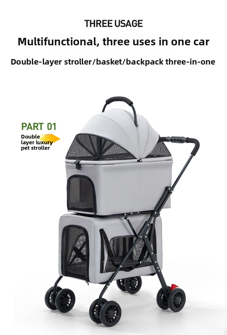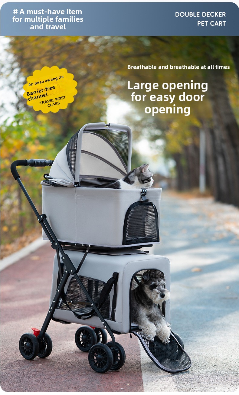 Double Pet Cart Dog Cat Teddy Baby Cart Out Pet Cart Lightweight Foldable Outdoor Travel