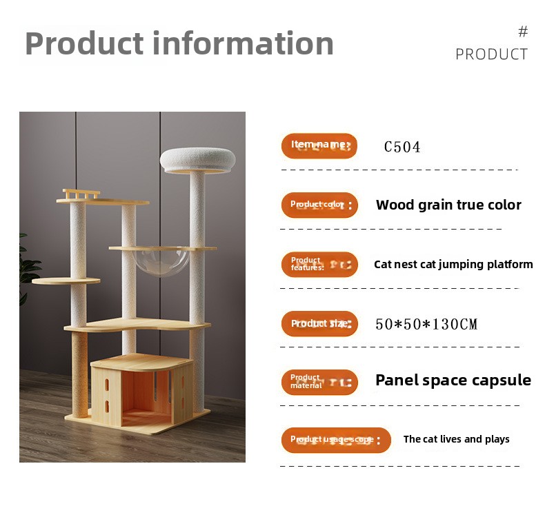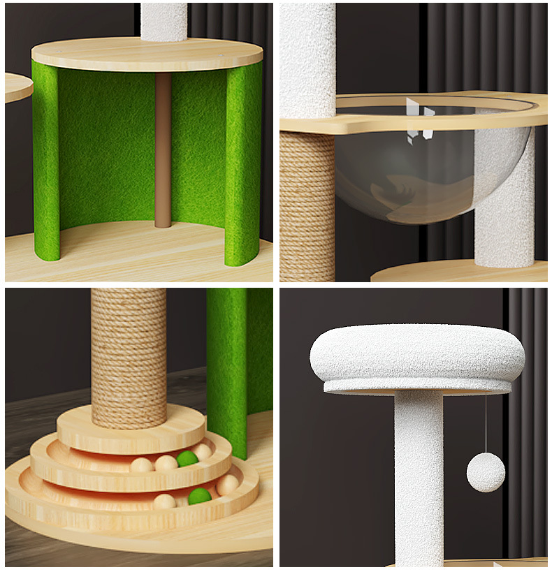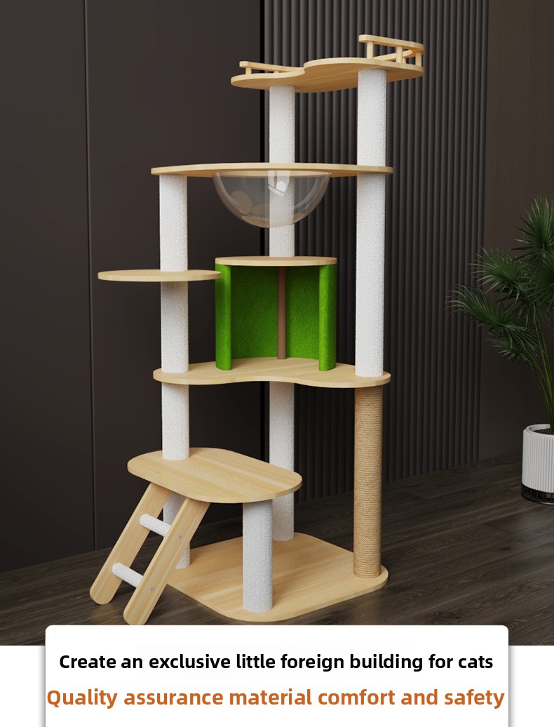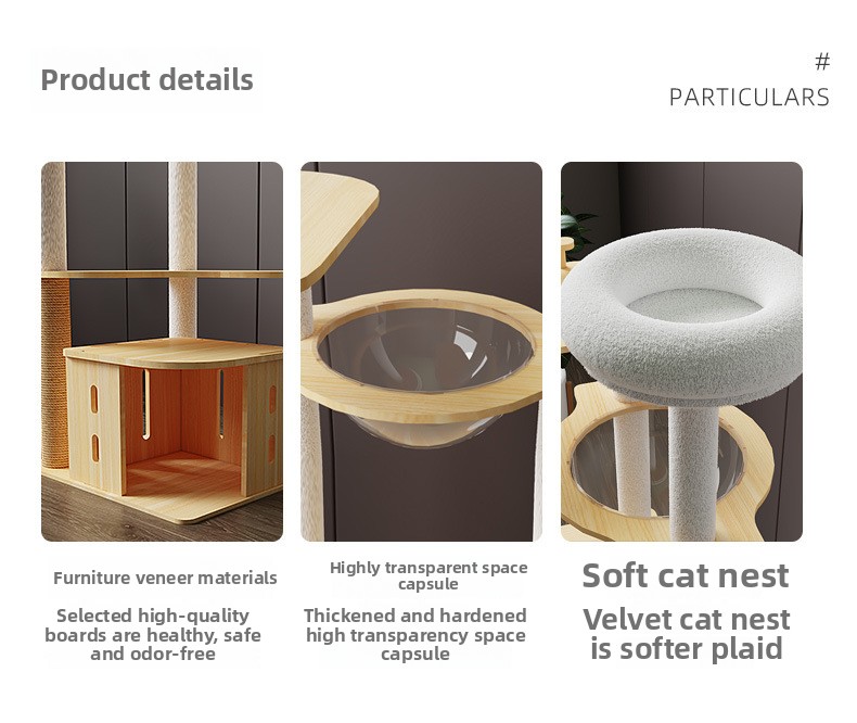 Wholesale cat climbing frame imitation solid wood large cat jumping platform space capsule cat nest cat tree integrated cat scratching board