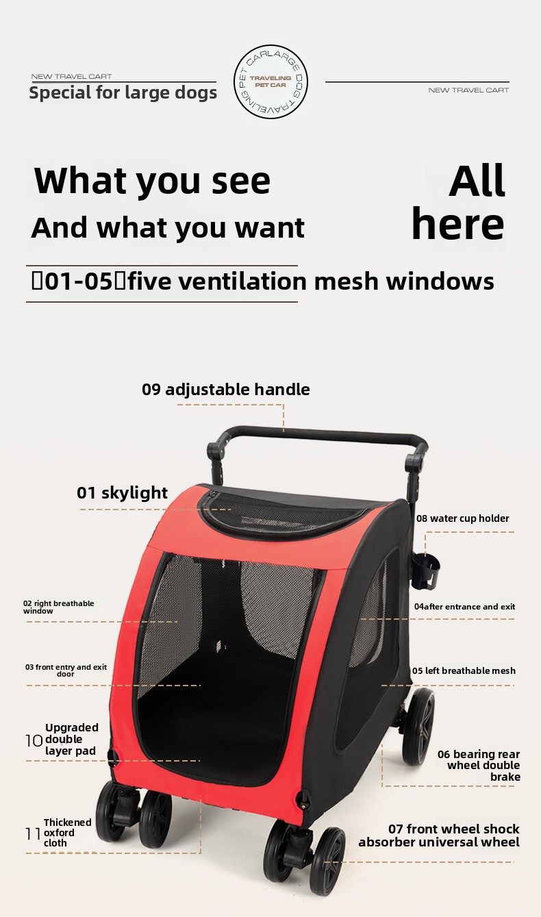 Wholesale medium and large dog pet cart dog cat teddy baby cart out small pet cart lightweight foldable