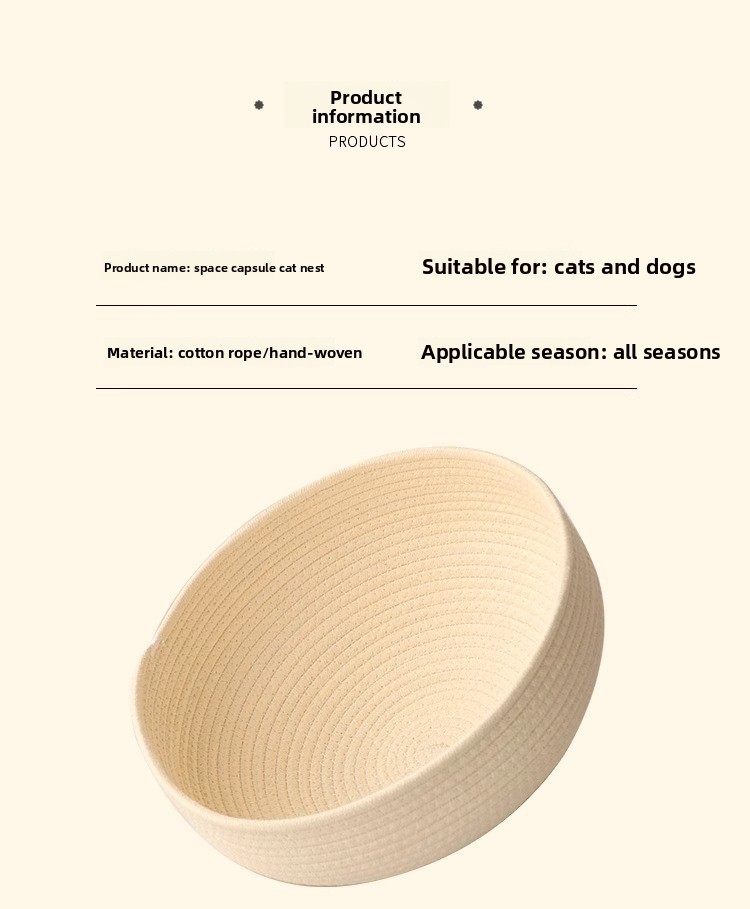 Space capsule cat nest cushion cotton rope woven, cool and breathable, universal in all seasons